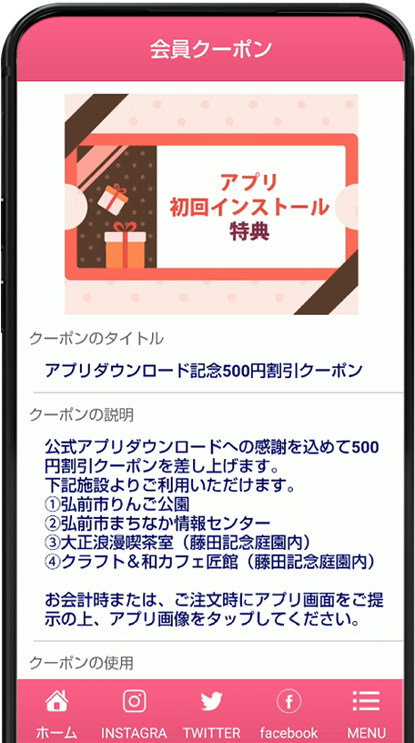 ※弘前観光コンベンション協会公式アプリは、App Store/Google Playからインストール出来ない非公開型アプリになります。